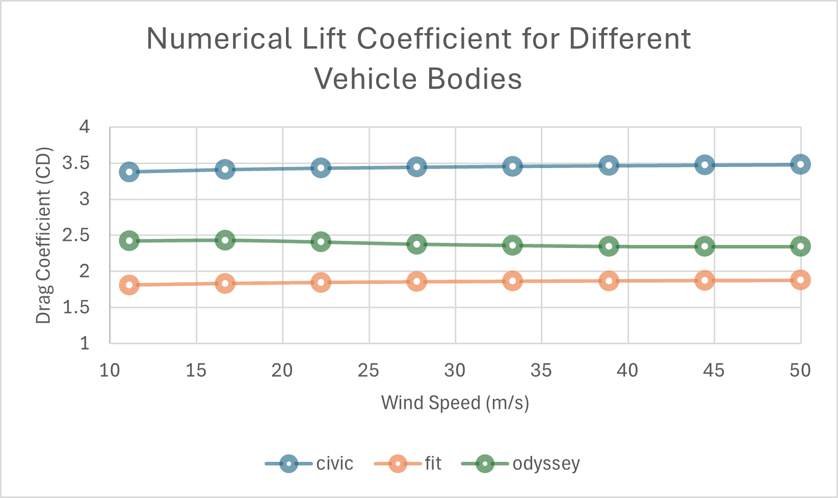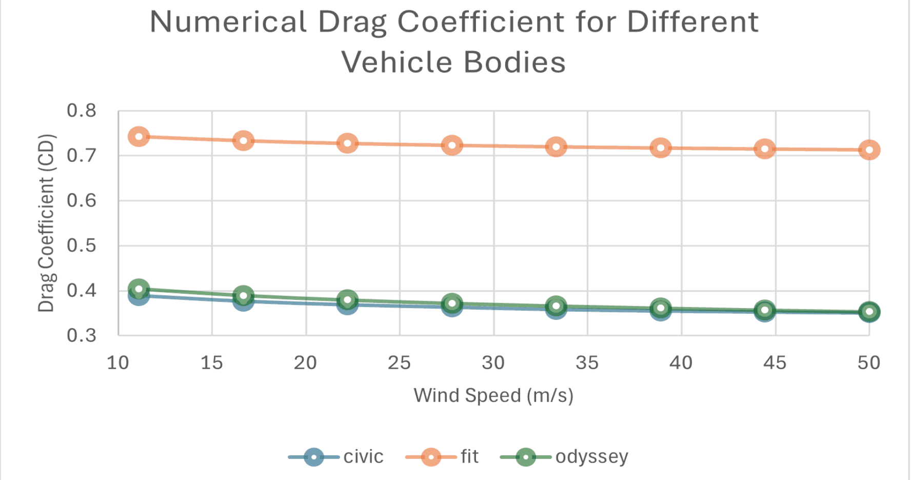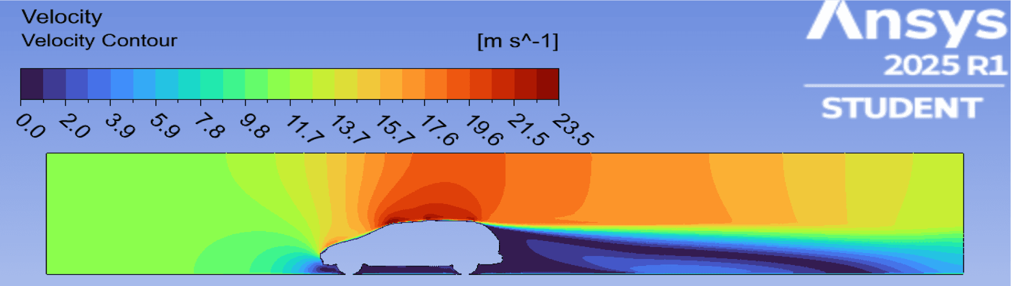 For this project, a CFD simulation was conducted to compare the aerodynamic characteristics of three vehicle body styles across varying speeds. Two-dimensional models were developed in ANSYS Fluent using a structured flow domain and appropriate boundary conditions to replicate real world driving conditions.