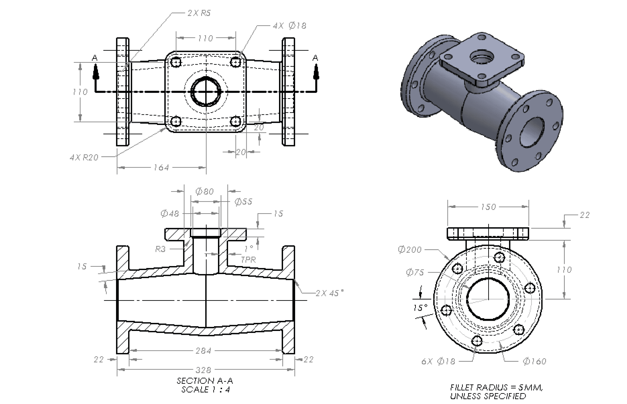 This selection of mechanical CAD designs was developed in SolidWorks using a range of modeling techniques. The work includes component and assembly design, motion analysis, sheet metal fabrication, surface modeling, and dimensioned mechanical drawings. This collection represents a subset of my broader CAD design work.