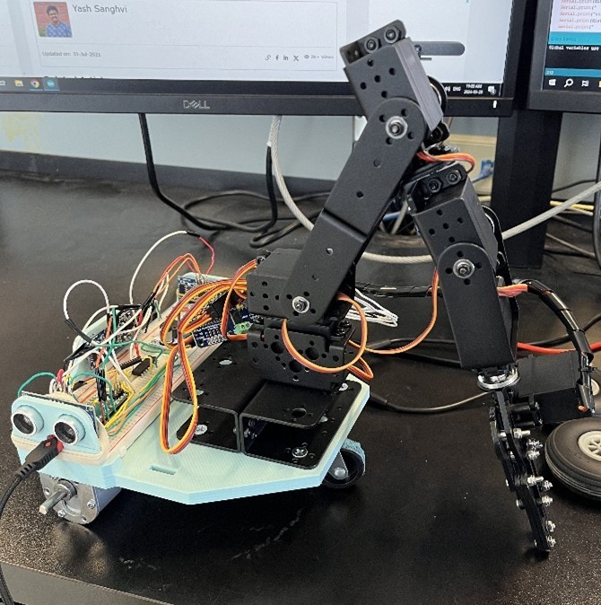 The featured robot is designed to navigate through a maze and interact with an object at the end. While core components were provided, the mechanical assembly, wiring, and control logic were developed to meet system requirements. This project highlights my experience developing designs from concept to practical implementation.